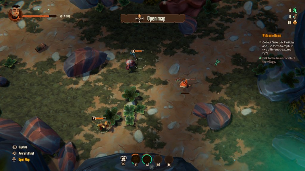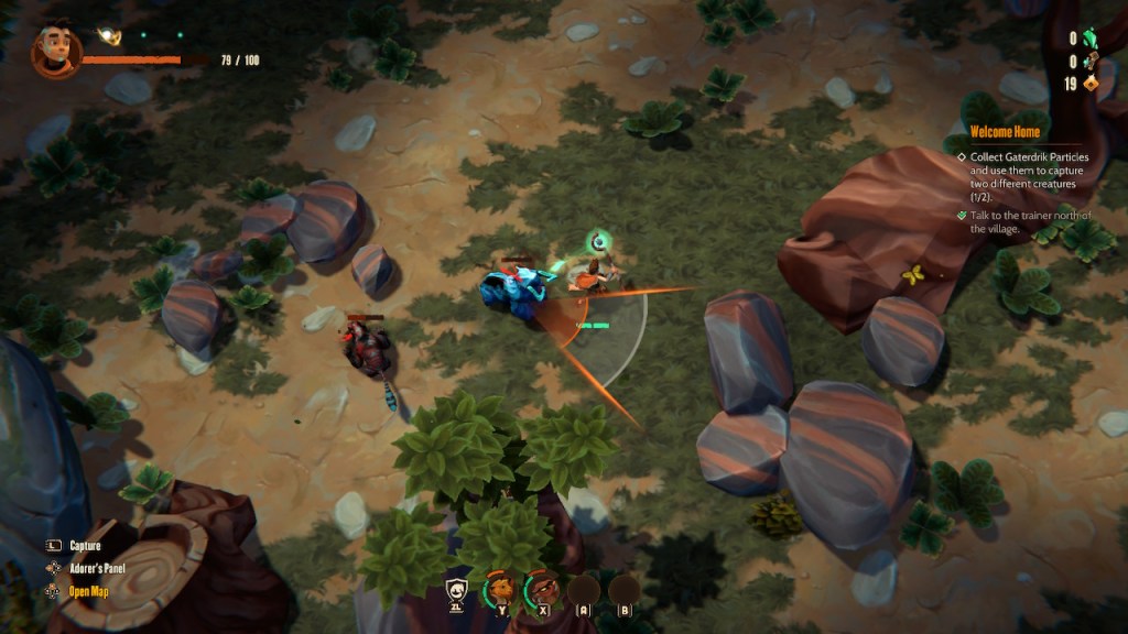 Capturing beasts is not something that necessarily comes easy or as frequently as one might expect. You must first obtain particles of Gaterdrik, which can be found in any of the quests you pick up, but aren’t easily obtainable. Once these are obtained, you can use your staff to attempt to capture a wild beast that is attacking you. By holding L, you raise your staff and begin the capture process. A semi-circle of sorts will usually appear and you must stand in front of this at all times to fill the capture gauge. Some beasts are easy to capture and will stand rather still, with the gauge hardly moving. Others will have smaller areas of capture with a fast rotating gauge that feels near-on impossible to keep in front of, while also avoiding attacks. While frustrating at times, Adore’s capture mechanics are unique in their own way and will force you to consider if it’s worth capturing this beast on this run. With the Particles of Gaterdrik being sparse and capturing being relatively difficult for stronger beasts, Adore does a brilliant job of adding a more physical and reactive challenge to the capturing process that other taming games fail to do correctly, if at all.